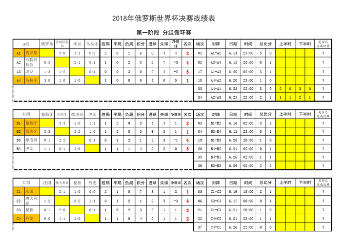 世界杯对阵结果表格
